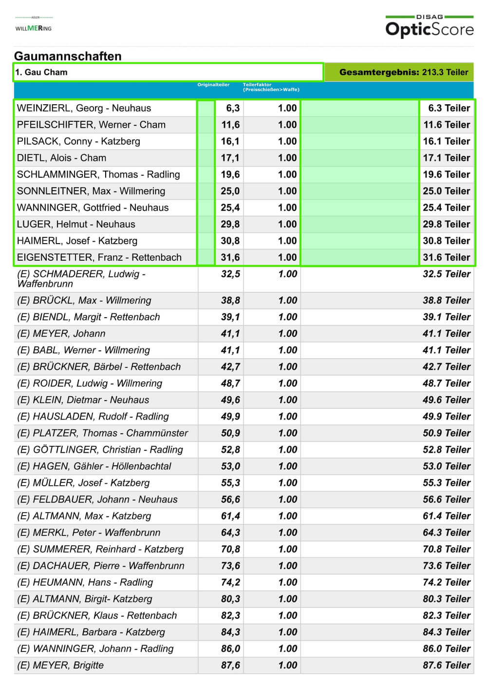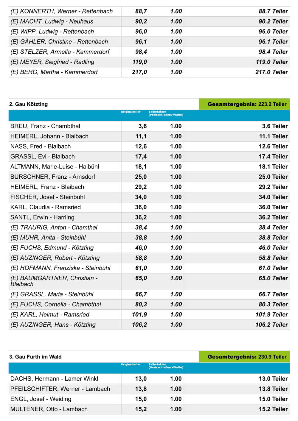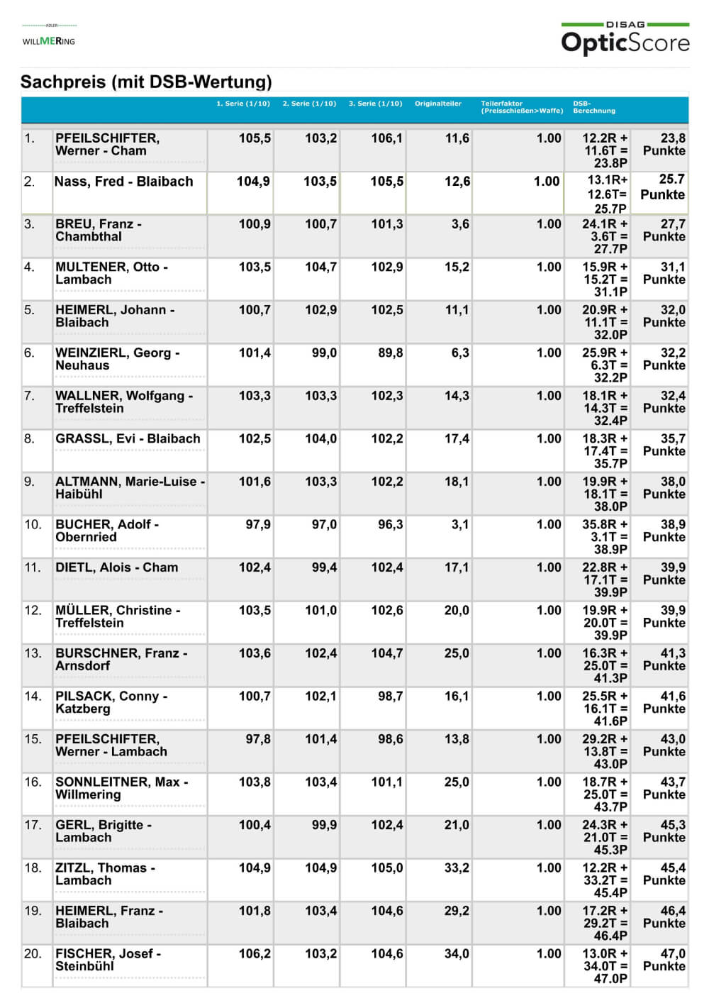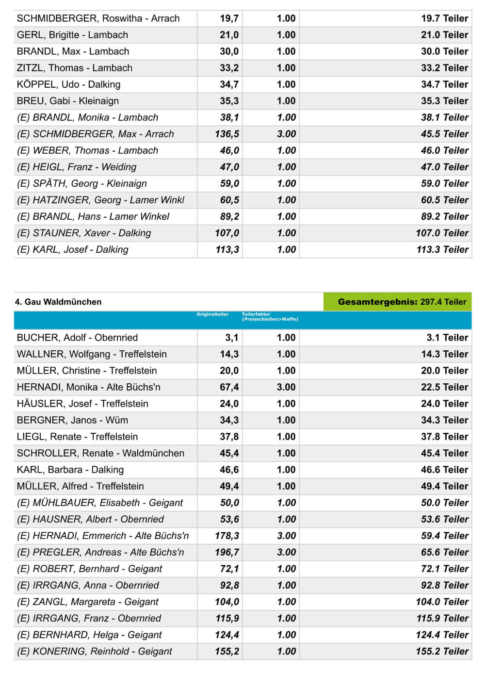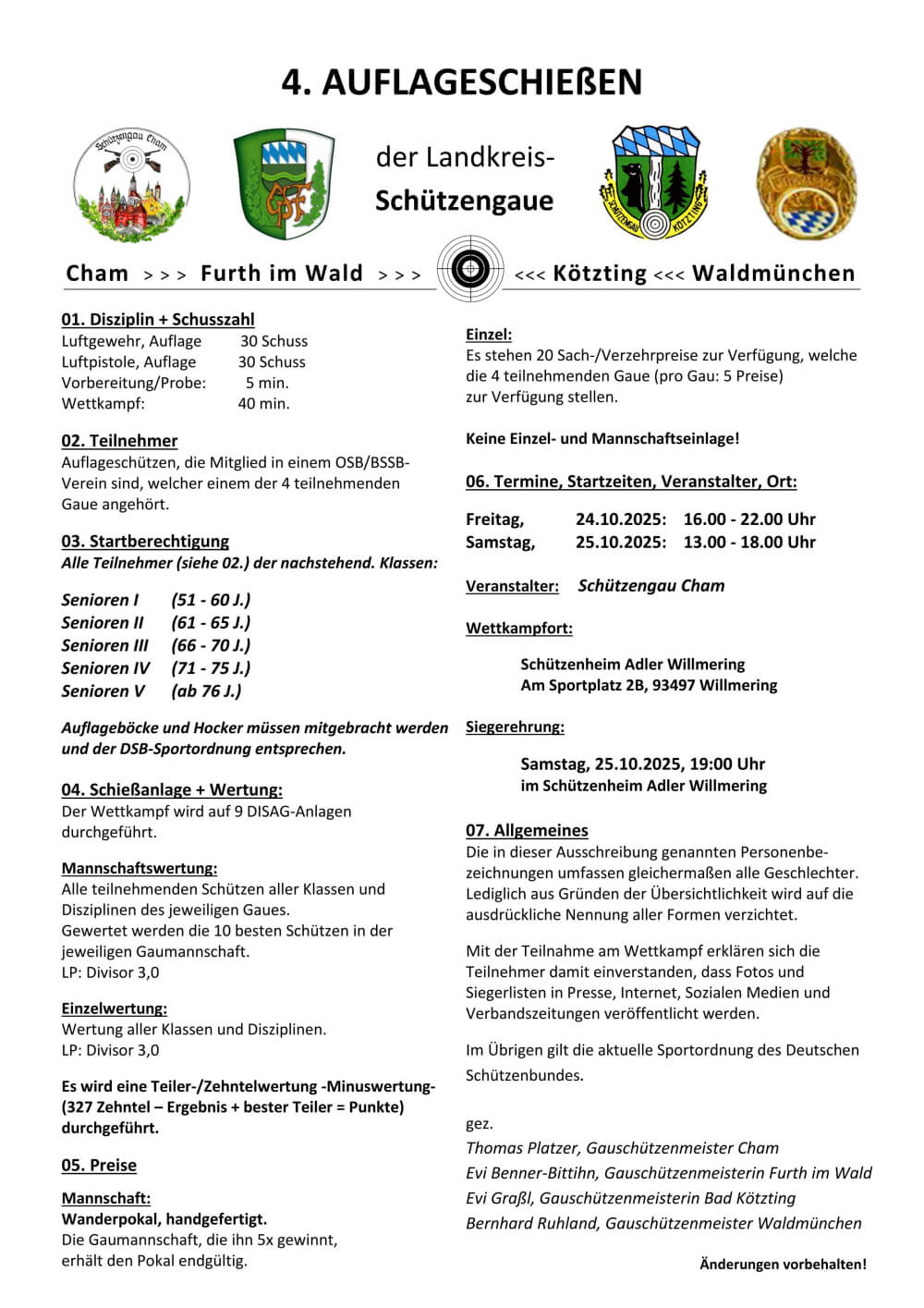 SIEGERLISTEN - 4. Auflageschießen der Landkreis-Schützengaue am 24. und 25.10.2025 bei Adler Willmering