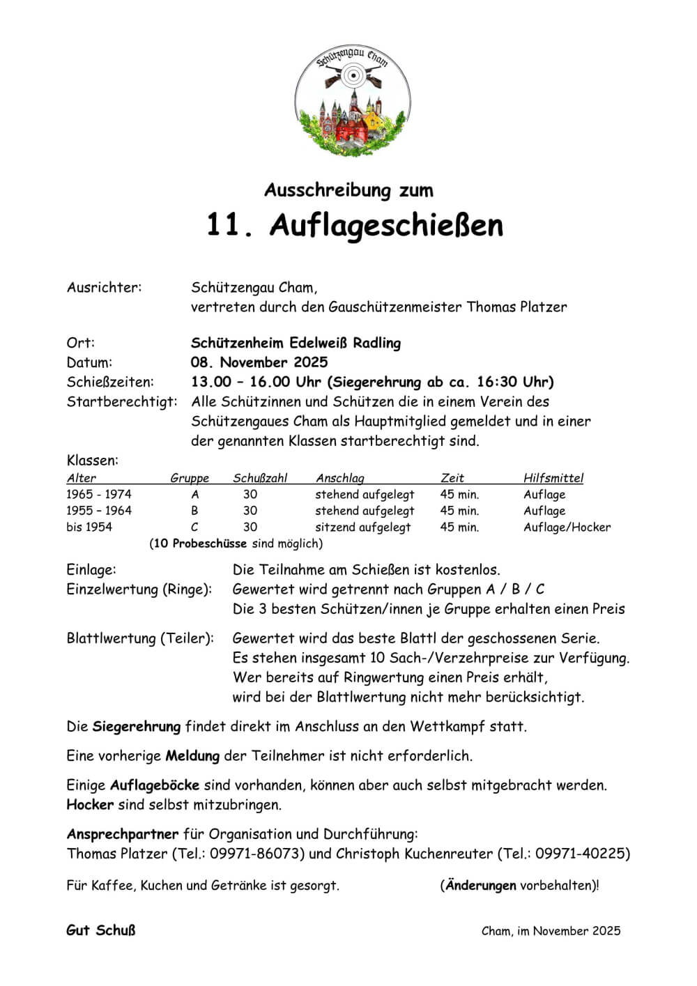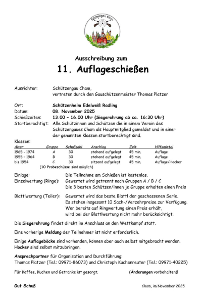 11. Auflageschießen (gauintern) im Schützengau Cham am 08.11.2025 bei Edelweiß Radling